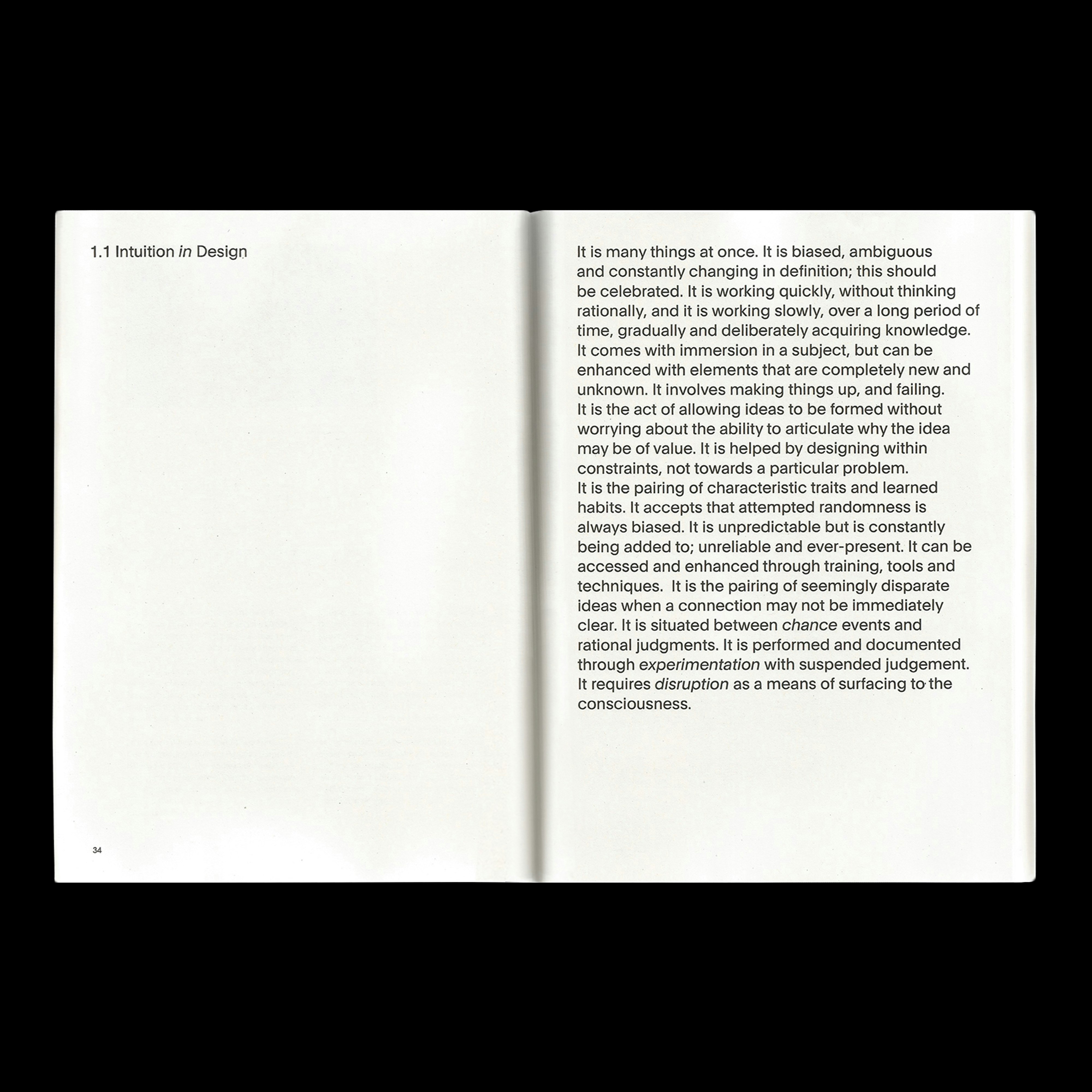 Publication for the thesis of product designer Josh Woolliscroft during his masters in European Design at the Glasgow School of Art. The project explored intuition in the arts and how it can be further employed within the product design process, and the use of gradients of the design alludes to the murky nature of intuition explored within the thesis.